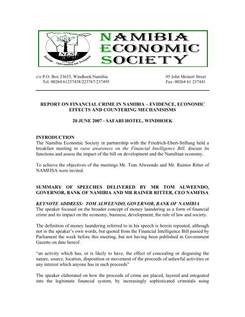 Money laundering act namibia. MONEY LAUNDERING OFFENCES 7. Bank means the Bank of Namibia established under the Bank of Namibia Act 1997 Act 15 of. 351 Namibia has through its promulgation of the Financial Intelligence Act 2007 Act No.