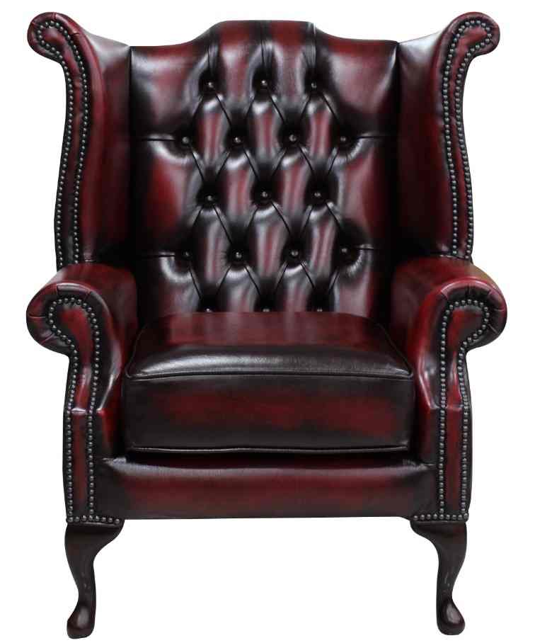 Chesterfield Queen Anne Wing Chair Antique Oxblood Red Real Leather Designer Sofas4u